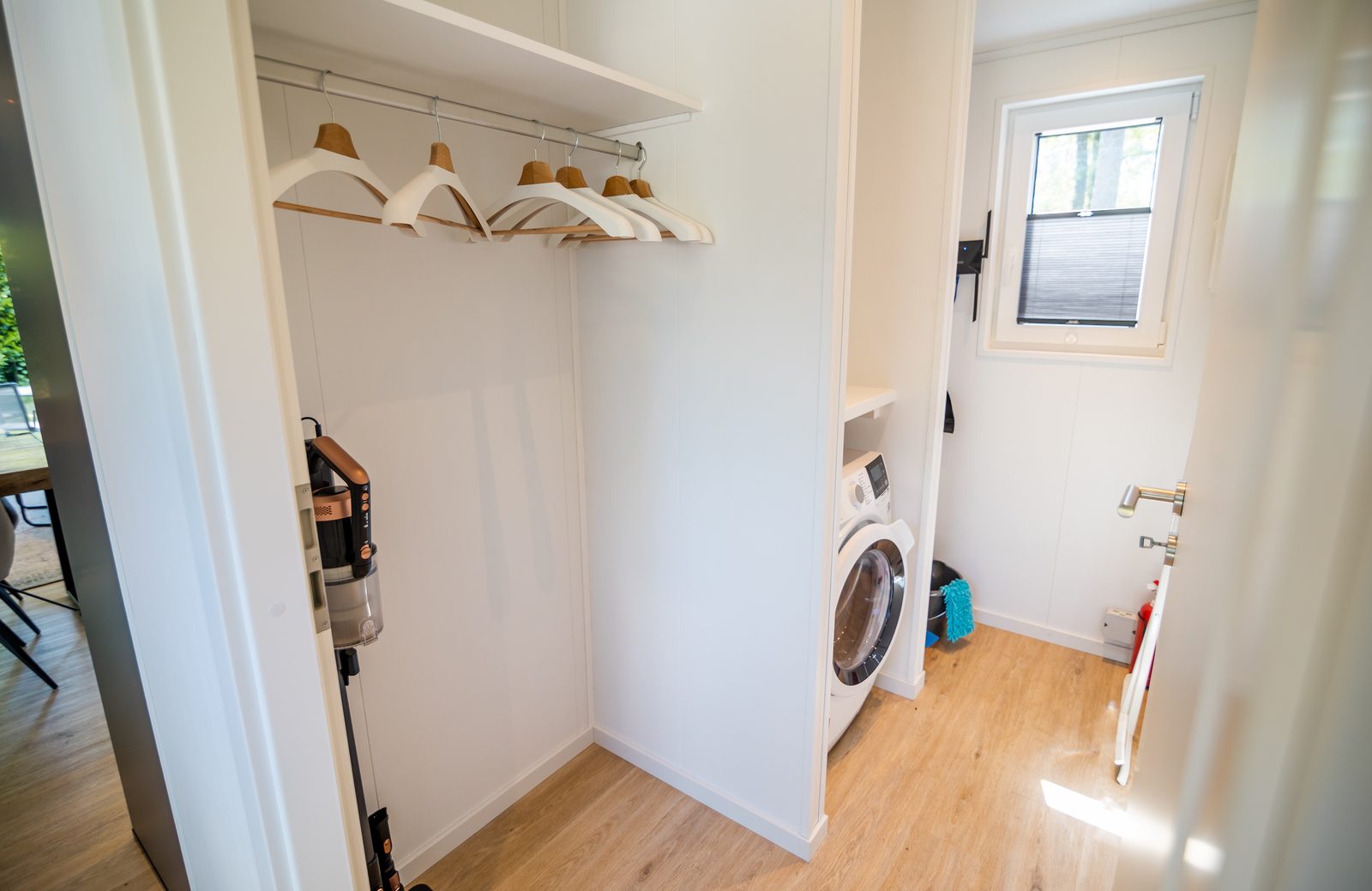 U slaapt in een ruime 2-persoons slaapkamer met veel kastruimte. De badkamer is uitgerust met een douchecabine, wastafel en toilet. Daarnaast is er een inpandige berging met een was-/droogcombinatie.